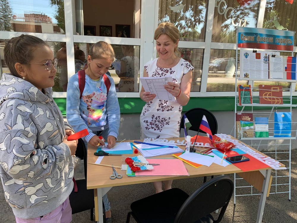 А ещё ребята с интересом приняли участие в мастер - классе, с помощью цветной бумаги, ножниц, клея они сделали свой флаг России, который забрали домой. В конце мероприятия ребята получили сладкие призы и приглашения стать читателями библиотек района.