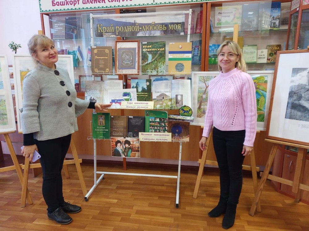 К мероприятию была оформлена выставка литературы «Край родной – любовь моя». На ней нашли своё место книги, освещающие путь развития Башкортостана с древнейших времён и до наших дней. Особое, почётное место заняли книги башкирских писателей и поэтов: М. Карима, З. Биишевой, Ш. Бабича, Х. Давлетшиной , Б.Бикбая.