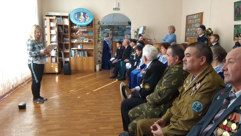 Накануне Дня защитника отечества библиотеки № 25 и №35 провели устный журнал «Слава тебе, победитель солдат». Гостями мероприятия и вместе с тем его участниками были: ветераны боевых действий в Афганистане, кадетский класс СОШ № 103 во главе с председателем совета ветеранов Дёмского района города Уфы – Гончаровым Виктором Алексеевичем, народный хор ветеранов Дёмского района «Уралочка» с его руководителем – Тарасовой Натальей Евгеньевной.