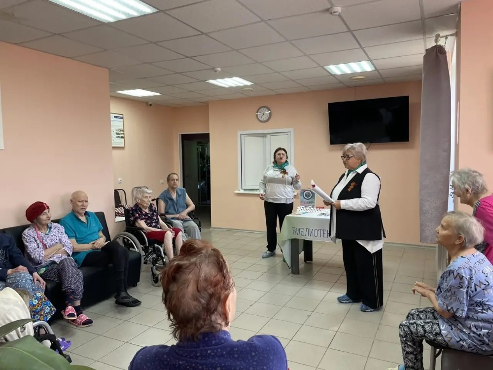 16 апреля в преддверии празднования Дня Победы библиотекари двух модельных библиотек № 35 и № 4 посетили АНО Центр социального обслуживания населения «Заботливые руки» с познавательной программой «Бессмертна Победа, бессмертны её солдаты».