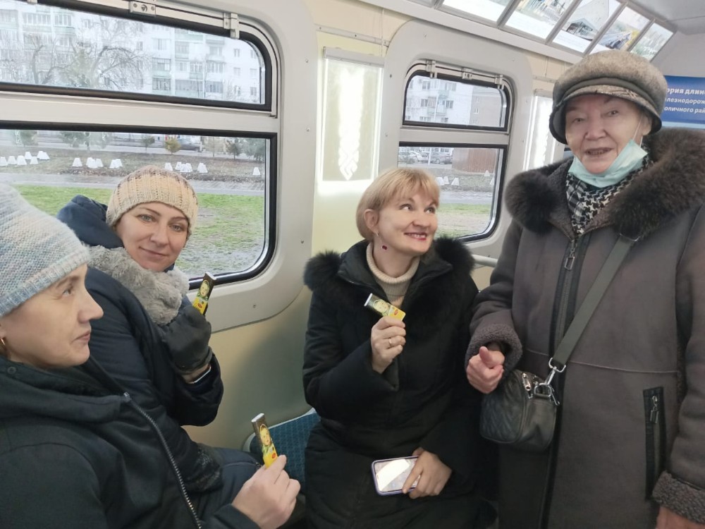 Вагон-музей, стоящий на настоящих рельсах и готовый отправиться в историческое путешествие, стал точкой притяжения в этот хмурый ноябрьский день. А всё потому, что семафор включил разрешающий зелёный сигнал, а «машинисты» библиотекари подготовили для всех желающих увлекательный фототур по экспозиции.