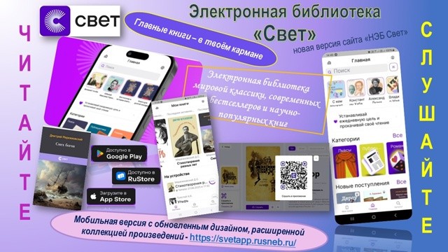 Электронная библиотека «Свет» - это новая версия сайта «НЭБ Свет» - https://svetapp.rusneb.ru/