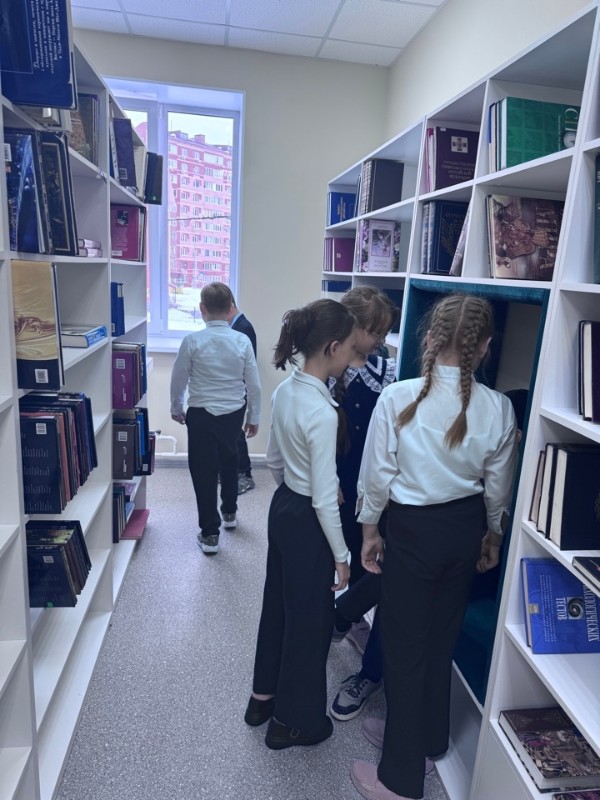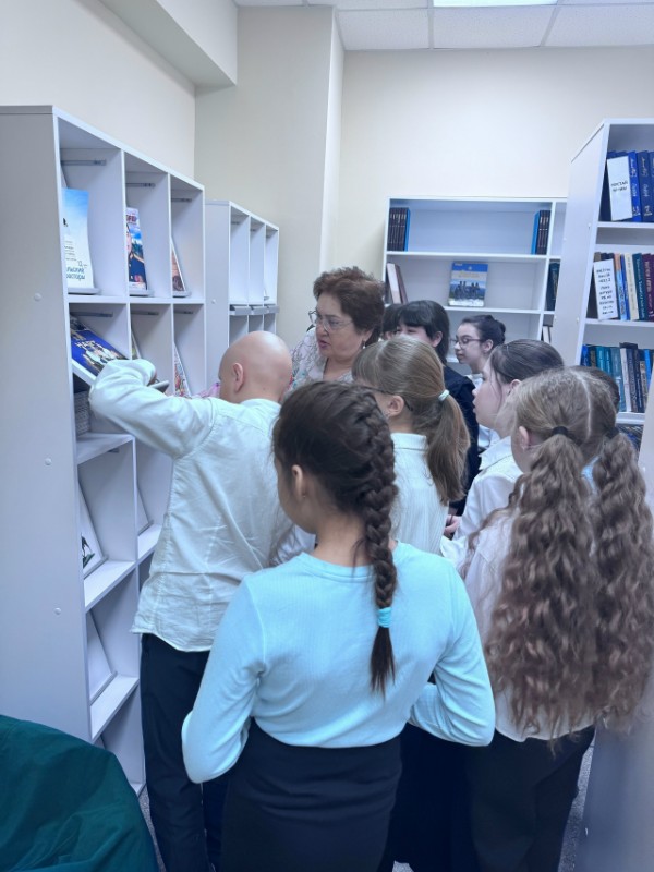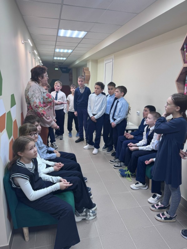 Ребята были встречены в красивом библиотечном холле и приглашены на экскурсию по библиотеке, в ходе которой они познакомились со структурой библиотеки, её основными отделами и услугами.