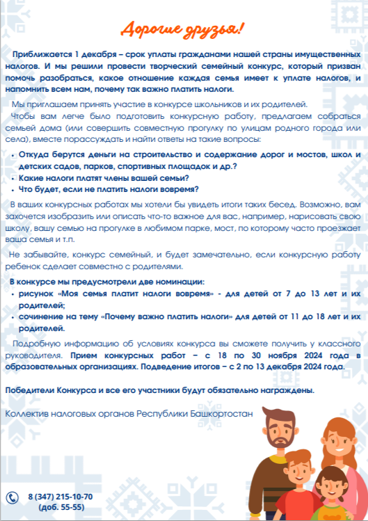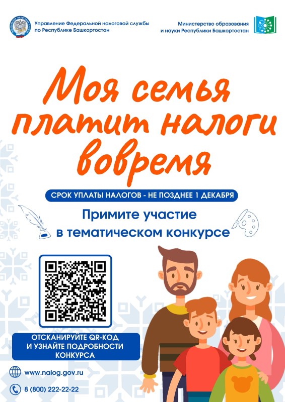 Налоговые органы Республики Башкортостан проводят творческий семейный конкурс «Моя семья платит налоги вовремя».