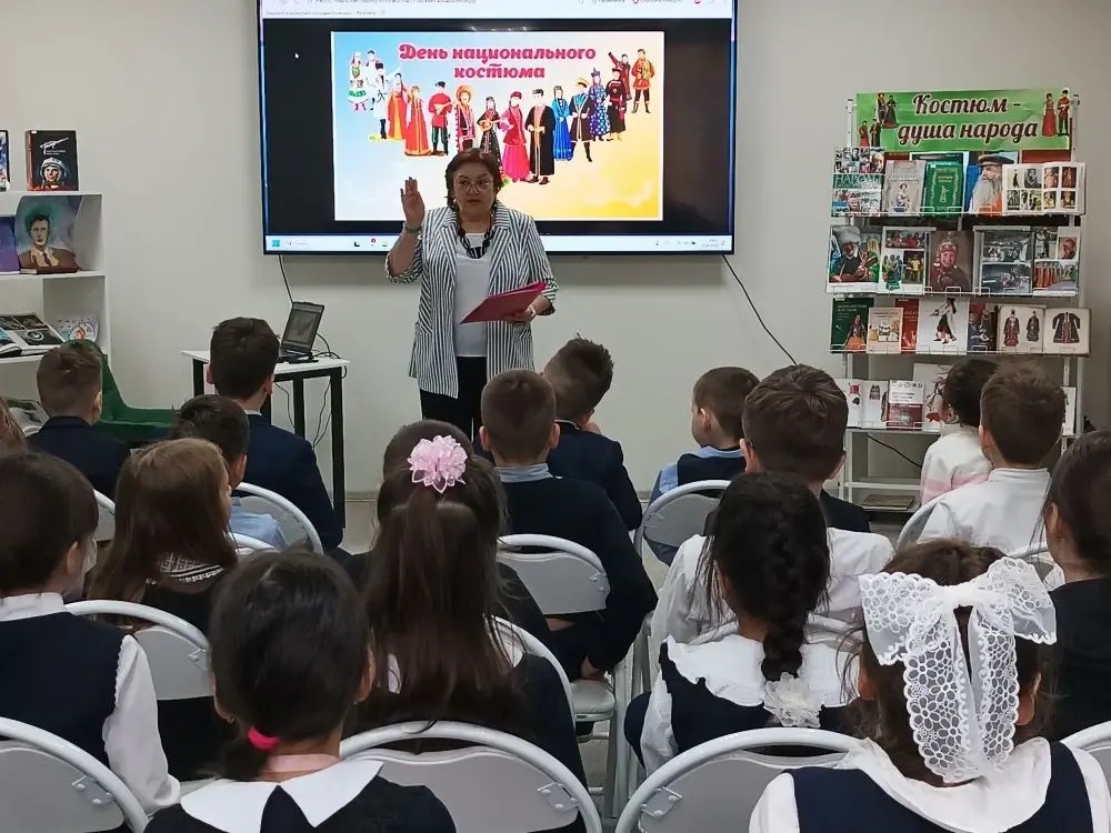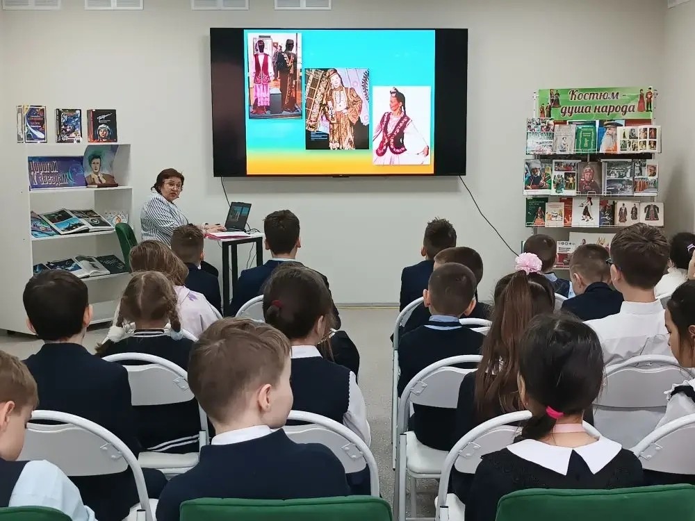 В рамках празднования в Республике Башкортостан Дня национального костюма в модельной библиотеке № 35 был проведен историко-краеведческий экскурс «Национальный костюм как культурный код» для учащихся МАОУ «Центр образования № 159» (классный руководитель Кинзябулатова Е.И.).