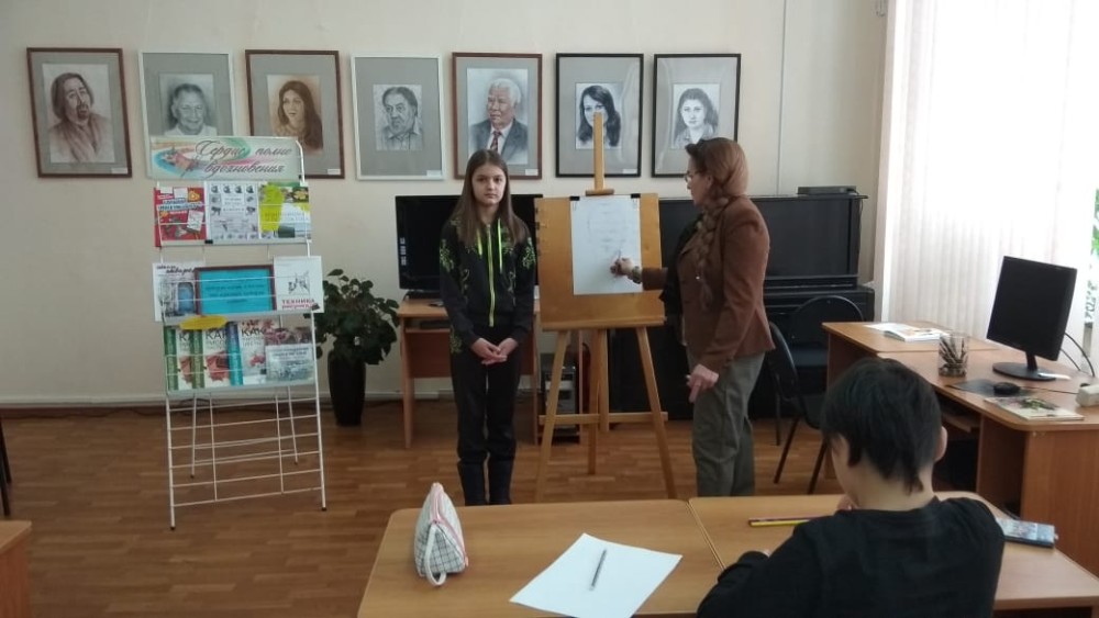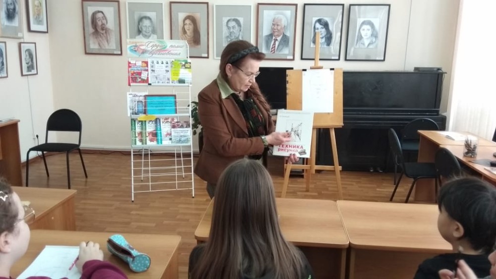 В модельной библиотеке № 35 состоялось закрытие выставки «Наставники Башкортостана» Ривы Галлямовой. Мероприятие посетили учащиеся художественного отделения Детской школы искусств №3. Рива Фларитовна рассказала о своем творчестве. Дети узнали, зачем нужны портреты, научились разбираться в видах портретов, поговорили о материалах и приемах, которые помогали художникам добиваться выразительности. Художница провела мастер класс, на котором познакомила ребят с основами создания портрета, техникой владения карандашом.