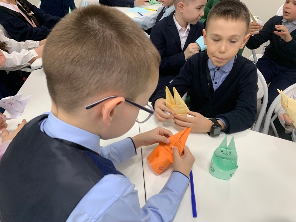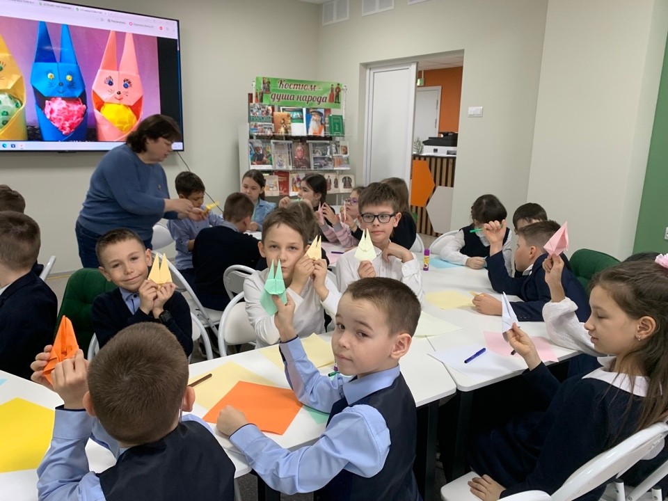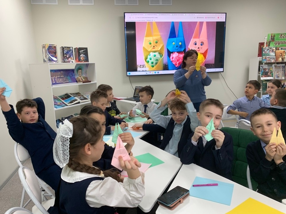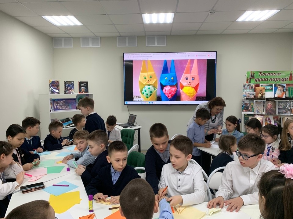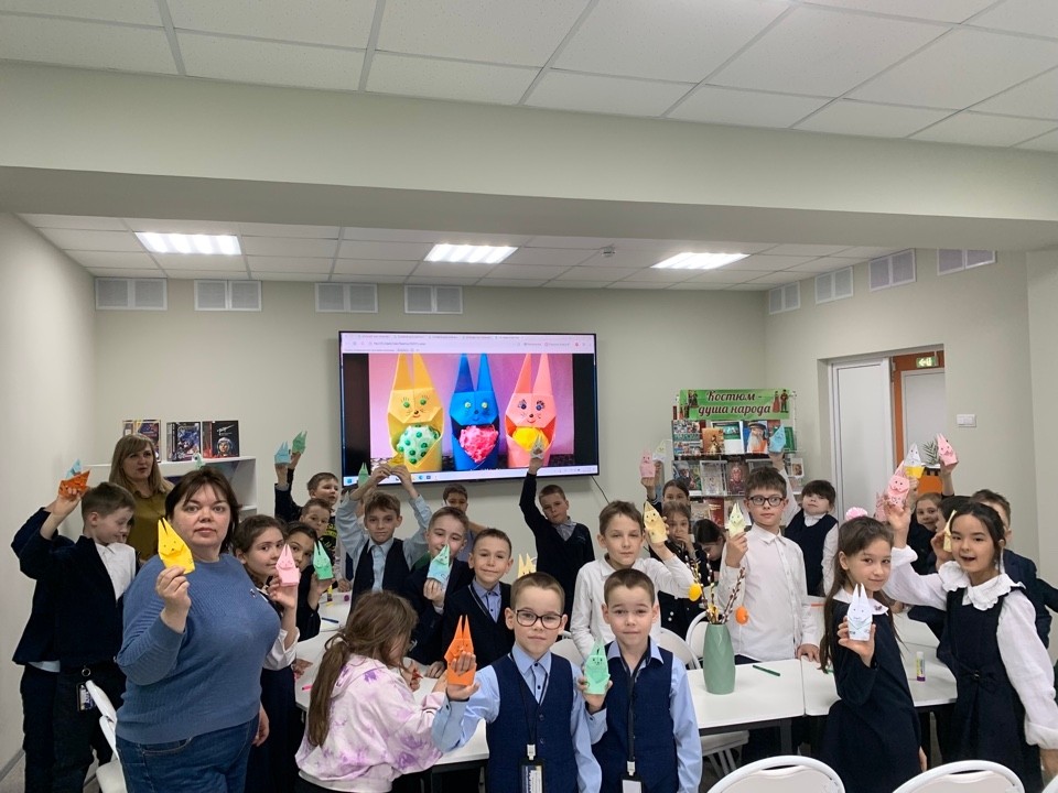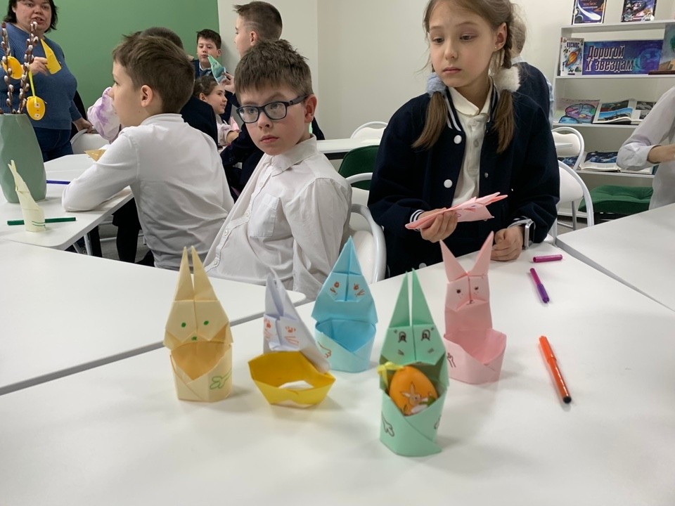 В библиотеке был проведен мастер-класс «Пасхальный зайчик». Как уже ясно из названия, были изготовлены зайчики из цветной бумаги в технике оригами. В готовом виде зайчик может служить подставкой для яйца, потому что он своими бумажными лапками его обнимает.