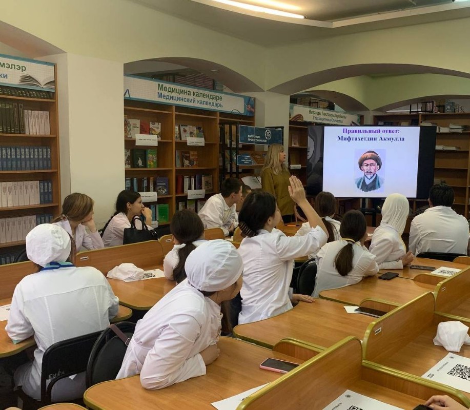 Диалог со студентами получился весьма оживленным и плодотворным. Самые активные участники-знатоки истории и культуры города Уфы - получили поощрительные призы.