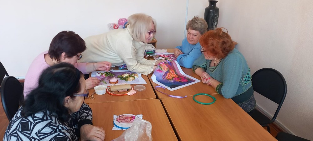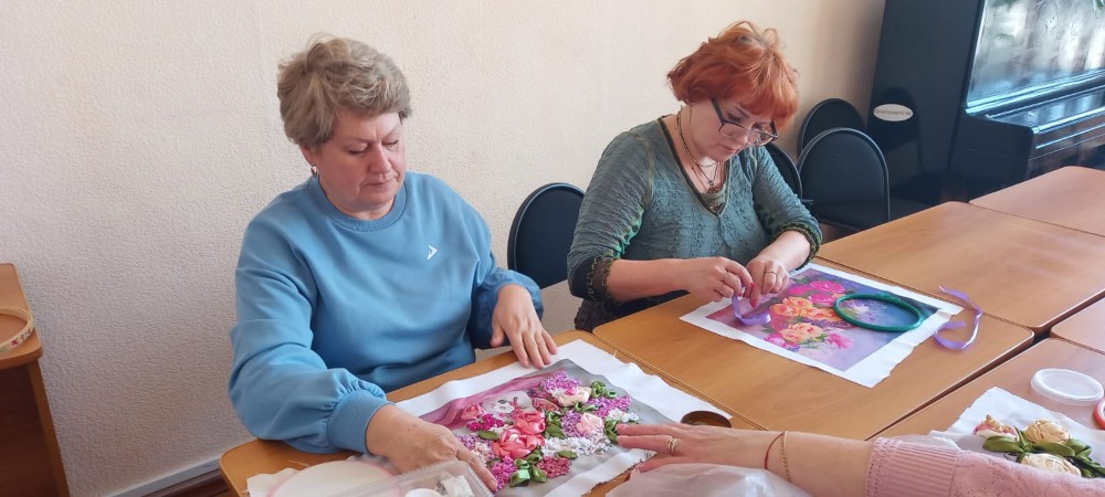 В модельной библиотеке №35 совместно с библиотекой №25 продолжается серия мастер- классов по вышиванию лентами с мастером Никитиной Натальей.
