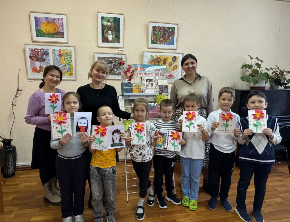 Следующим шагом мероприятия стал мастер-класс "Открытка для мамы". По заранее заготовленным шаблонам ребята с помощью библиотекарей создали свои уникальные поздравительные открытки. Кто-то из детей написал слова любви для мамы, а кто-то просто подписал и украсил сердечками.