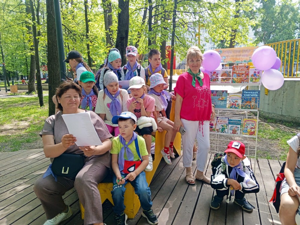Массовые библиотеки №35 и №25, совместно с коллегами из детской библиотеки 19 организовали литературную площадку с книжной фотозоной «Счастье, солнце, дружба - вот, что детям нужно».