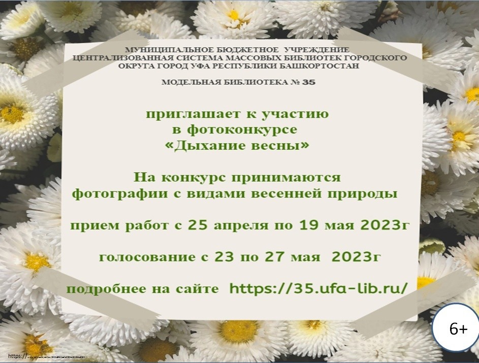 Голосование пройдет на сайте модельной библиотеки №35 МБУ ЦСМБ ГО г. Уфа www.35.ufa-lib.ru . Один посетитель сайта может проголосовать только за одну фотографию. Завершение голосования 27 мая 2023 года в 16.00 часов по московскому времени.