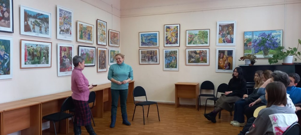 Елена Владимировна рассказала публике о своих юных художниках, их достижениях и успехах в учебе и творчестве. Выставка была организована с целью показать работы ребят, которые они создавали в течение года. На выставке были представлены рисунки разных жанров и стилей: от натюрмортов до пейзажей.