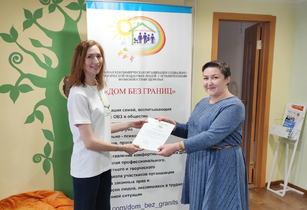 13 марта, волонтёр нашей библиотеки Анна Шафикова побывала в гостях у коллектива АНО "ДОМ БЕЗ ГРАНИЦ". Директор центра социально-психологической поддержки людей с ОВЗ Регина Сафронова гостеприимно встретила автора и организатора БИТВЫ КНИГАСЕНСОВ ГОДА СЕМЬИ. Это инклюзивное онлайн-мероприятие Анна подготовила вместе с волонтёром АНО Зульфией Батыргареевой.