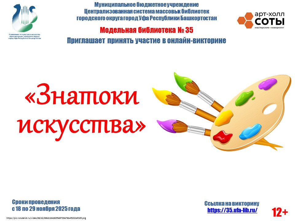 Приглашаем вас в онлайн‑викторину «Знатоки искусства» — лёгкое и увлекательное занятие для всех, кто любит искусство или только начинает им интересоваться.